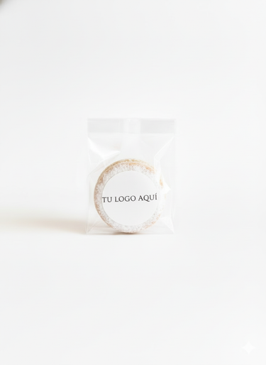 Alfajor en bolsa sellada y sticker, decorado con azúcar glass 4CM